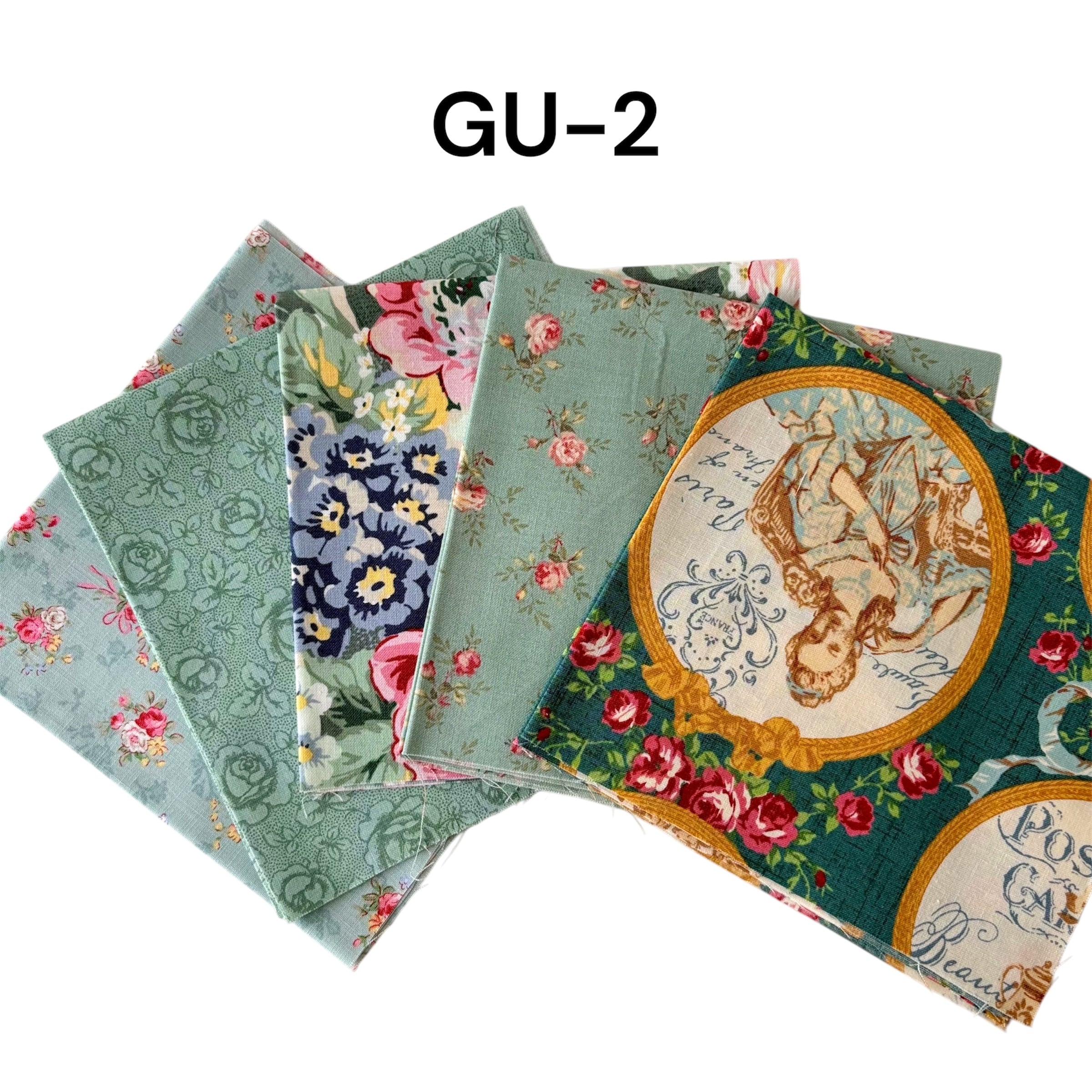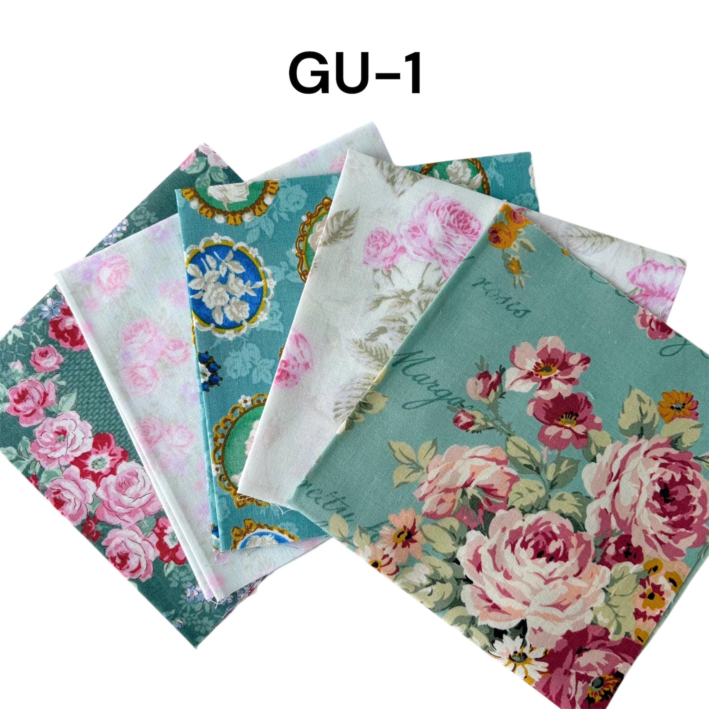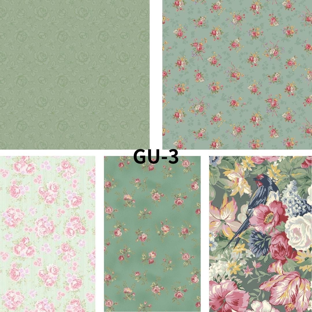 【GU】グリーン系 5枚セット 色々な柄を楽しみたい方やお試しに。 ミニカットクロス キルトゲイト ルルブーケ QUILTGATE RURUBOUQUET 薔薇 花柄 バラ ばら ローズ 生地 ハンドメイド パッチワーク カルトナージュ ドール服 コットンプリント