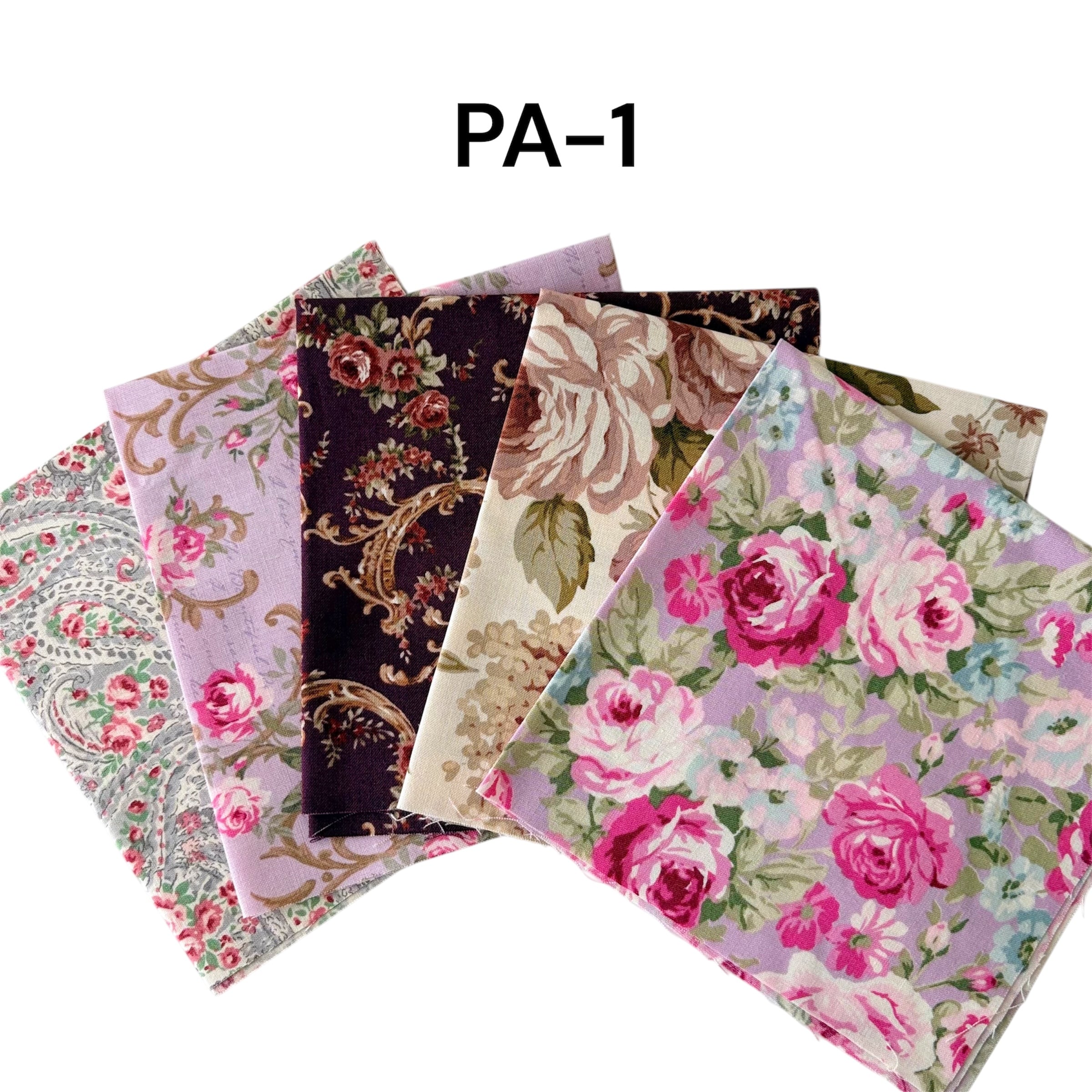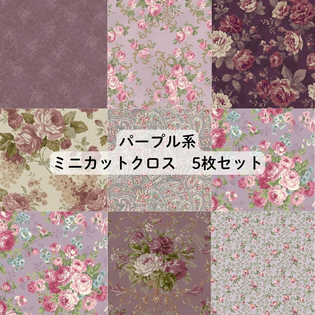 【PA】パープル系 5枚セット 色々な柄を楽しみたい方やお試しに。 ミニカットクロス キルトゲイト ルルブーケ QUILTGATE RURUBOUQUET 薔薇 花柄 バラ ばら ローズ 生地 ハンドメイド パッチワーク カルトナージュ ドール服 コットンプリント
