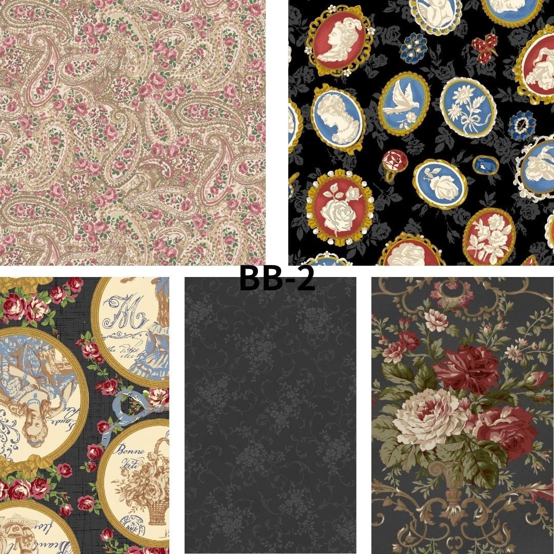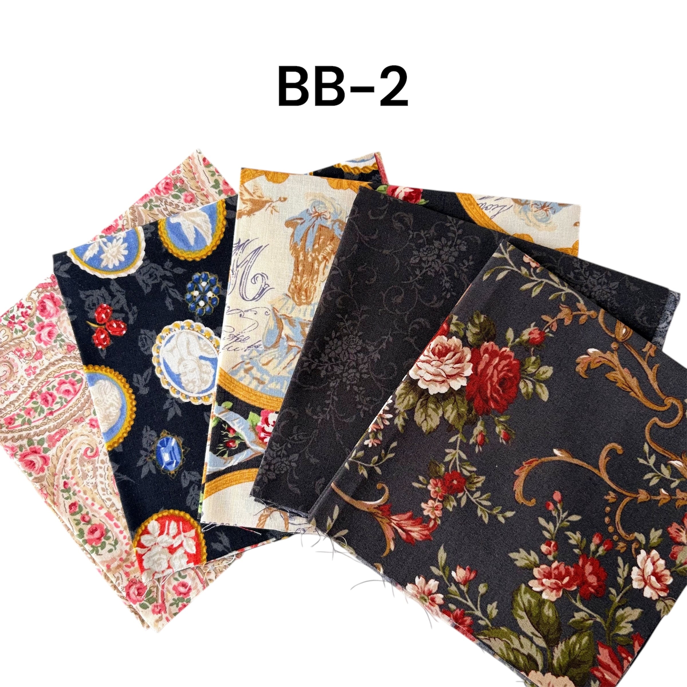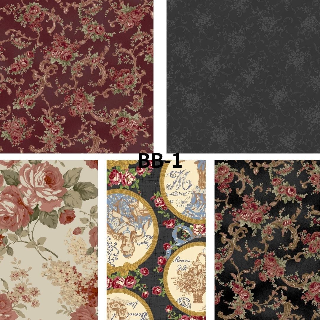【BB】ブラック・ブラウン系 5枚セット 生地のお試し・色々な柄を楽しみたい方に。ミニカットクロス キルトゲイト ルルブーケ QUILTGATE RURUBOUQUET 薔薇 花柄 バラ ばら ローズ 生地 ハンドメイド パッチワーク カルトナージュ ドール服 コットンプリント