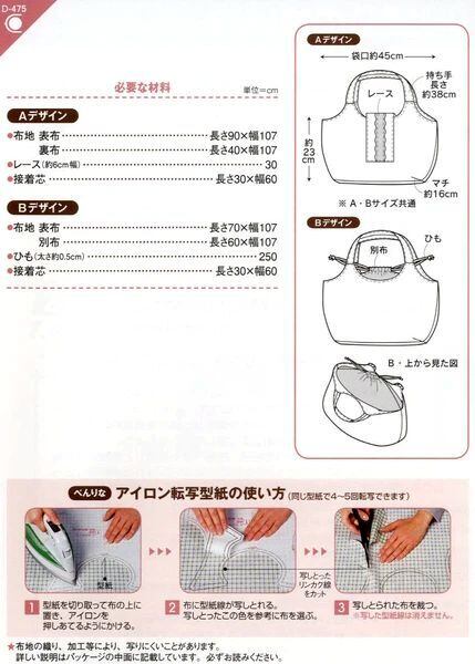 【PTB-6】フタ付きトートバッグ 型紙 パターン サン・プランニング (D475)