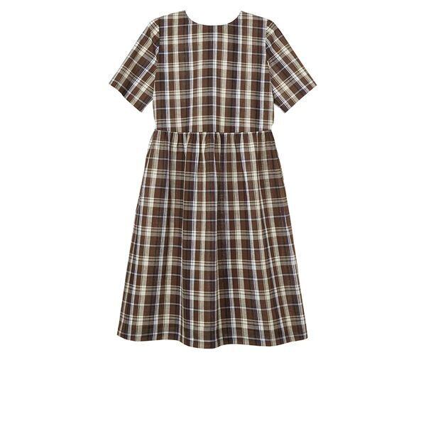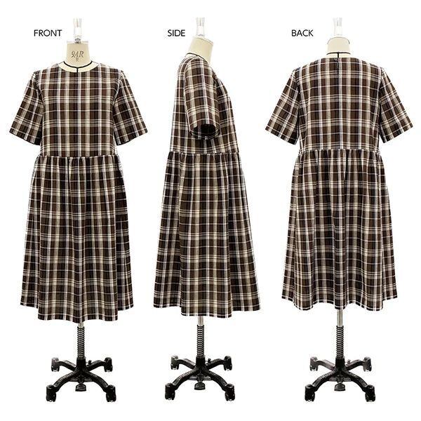 長めの半袖に4枚はぎスカートでふんわりしたギャザー切り替えのワンピース。