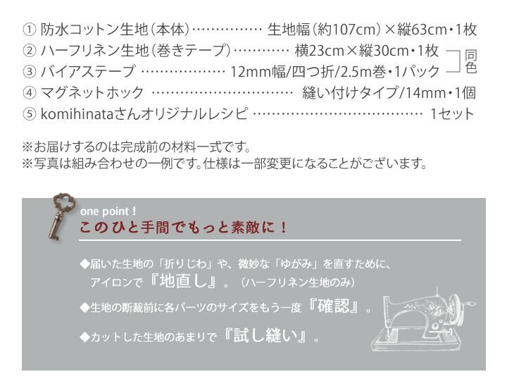 ・防水コットン生地(本体)/生地幅(約107cm)×横63cm・1枚