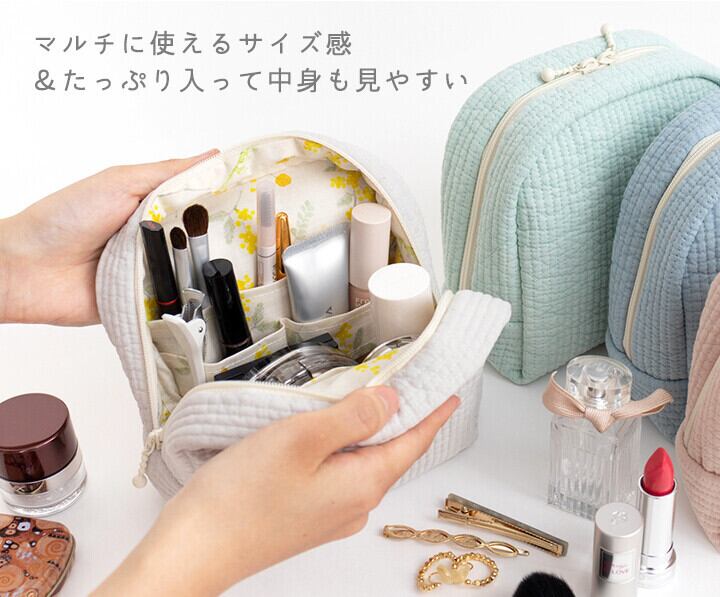 アイテムのサイズに合わせて仕分けできる豊富な内ポケット付きで、整理しやすく見た目以上の収納力。