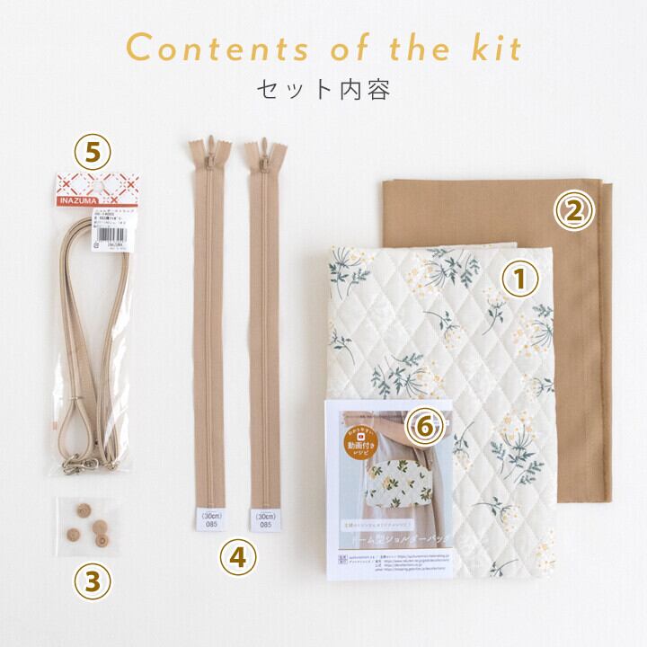 DECOLLECTIONS Co.,Ltd.オリジナル・大人かわいい柄と上品なひし形ステッチが魅力のキルティング生地をメインにした、ドーム型ショルダーバッグのキットです。