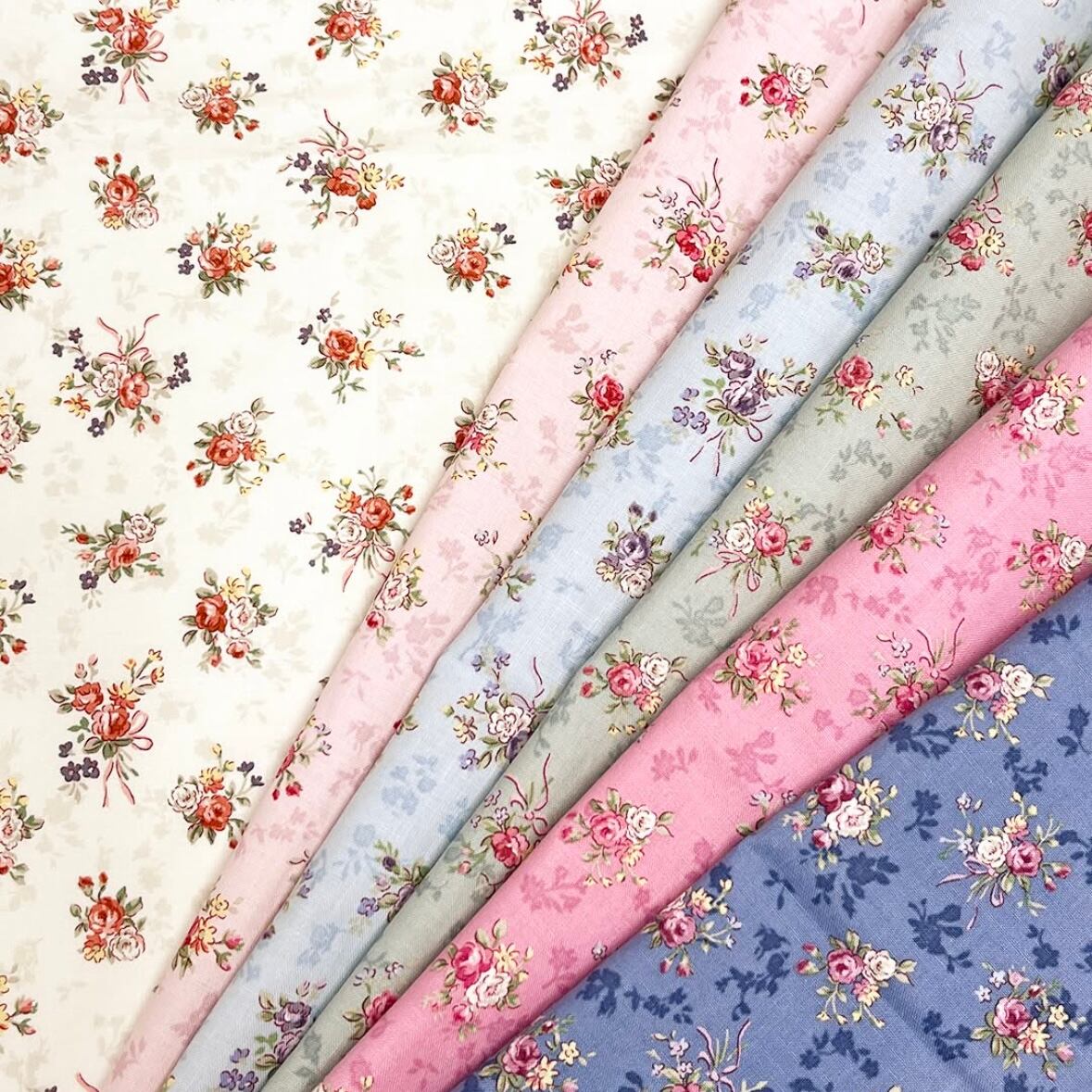 小薔薇のブーケが散りばめられた可愛い生地です。